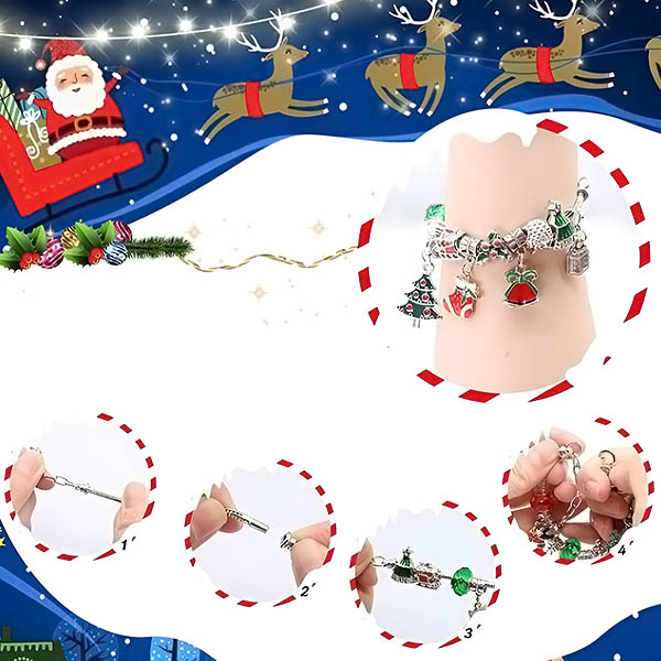 - Świąteczny kalendarz adwentowy zawierający 22 zawieszki i 2 bransoletki do stworzenia dwóch uroczych bransoletek.