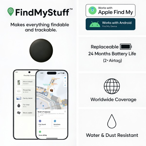 📱 Kompatybilność z Apple i Android „Znajdź”