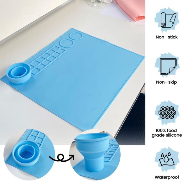 Wykonana w 100% z silikonu spożywczego, ta wodoodporna, nieprzywierająca i antypoślizgowa mata jest idealna do wszystkich potrzeb rzemieślniczych. Dzięki 14 wgłębieniom i obszarowi do mieszania idealnie nadaje się do porządkowania materiałów.