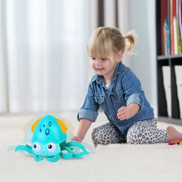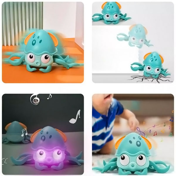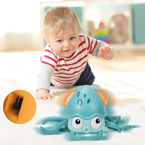 Ta zabawna ośmiornica pełza dookoła, inspirując dzieci do naśladowania i rozwijania umiejętności motorycznych.