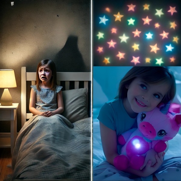 Naciśnij brzuch jenorożca STARBEAR i zobacz, jak gwiazdy tańczą po suficie i ścianach. Niezależnie od tego, czy służysz do opowiadania historii, czy jako uspokajające światło nocne, ten świecący projektor przekształca każde pomieszczenie w kojącą, magiczną przestrzeń, pomagając dzieciom spokojnie odpłynąć.