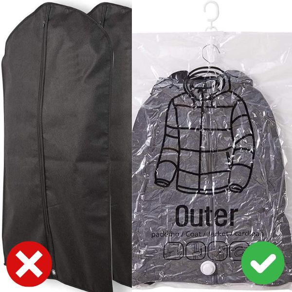 Unikaj kłopotliwego otwierania toreb w poszukiwaniu ubrań. Przejrzysta i przezroczysta konstrukcja VACUHANG ułatwia sprawdzenie, co jest w środku, bez konieczności ich otwierania. Ta funkcja, w połączeniu z haczykami na wieszaki, umożliwia szybki i wygodny dostęp do przechowywanych przedmiotów.