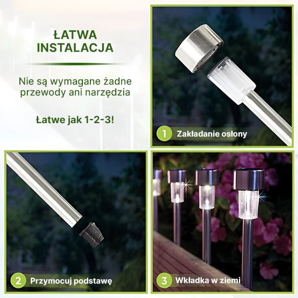 Doświadcz bezproblemowej instalacji bez potrzeby okablowania; wystarczy wbić je w ziemię i cieszyć się natychmiastowym oświetleniem.
