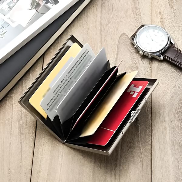 Wykonany z wysokiej jakości stali nierdzewnej, portfel ten jest trwalszy i bardziej wytrzymały niż opcje z tworzywa sztucznego lub aluminium, oferując doskonałą ochronę kart.