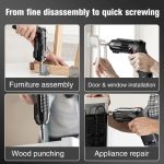 ⚡ Moc elektryczna, bez wysiłku – wkręca i wykręca śruby ze stałą siłą, bez obciążenia dłoni nawet przy dłuższym użytkowaniu
