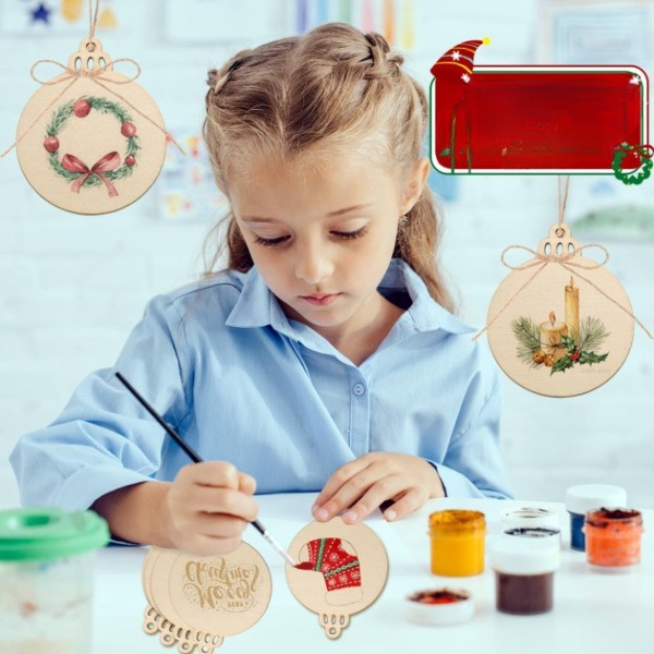 Odmień swój świąteczny wystrój za pomocą 30 wysokiej jakości, wstępnie nawierconych drewnianych plakietek, idealnych do tworzenia spersonalizowanych ozdób, które dodadzą rustykalnego uroku Twojej choince.
