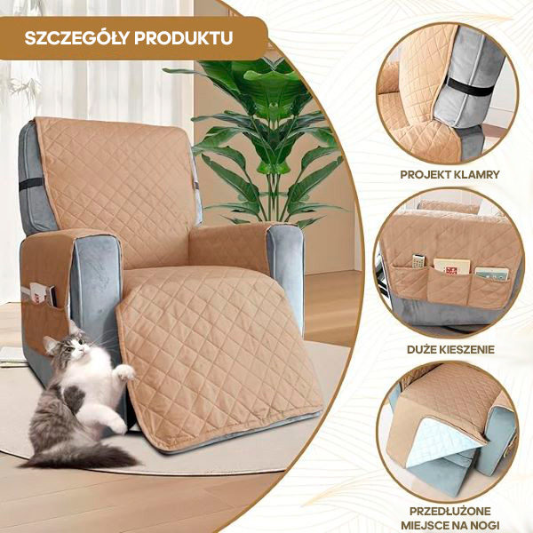 Idealny sposób na ochronę fotela przed sierścią psa lub kota, plamami, okruchami i innymi elementami, które mogą uszkodzić lub poplamić fotel.