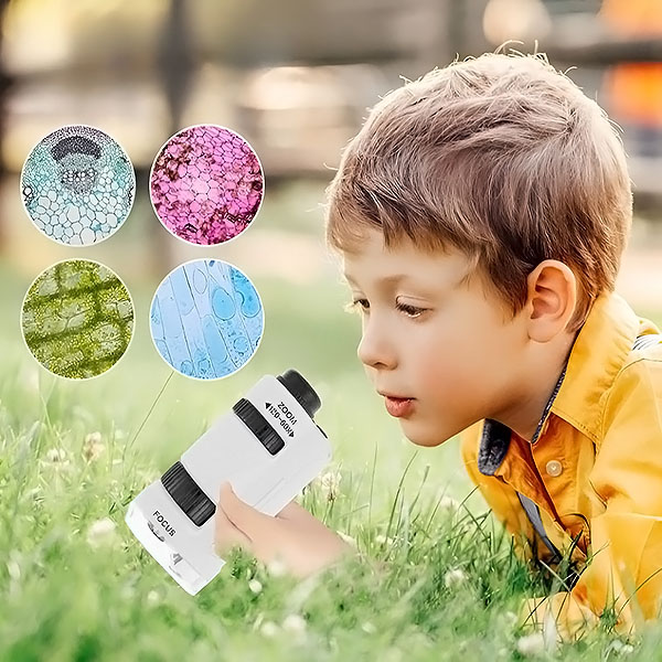 Ten przenośny mikroskop rozwija umiejętności obserwacji, koncentracji i rozwiązywania problemów. Zamienia naukę w zabawę, czyniąc z niego ekscytujący i edukacyjny prezent, który pobudza ciekawość.