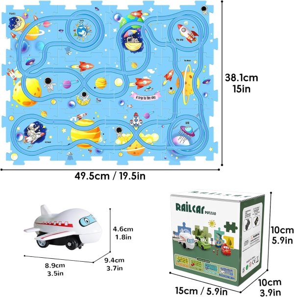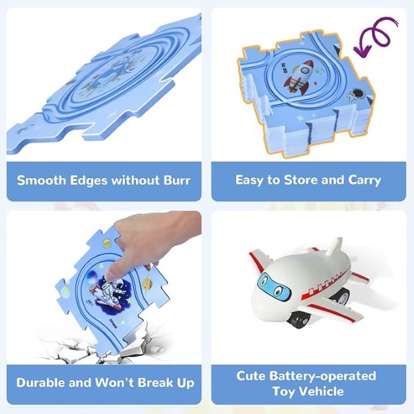 Zestaw zawiera wiele elementów torów, które pozwalają dzieciom z łatwością tworzyć różne układy, zwiększając ich kreatywność i umiejętności rozwiązywania problemów.