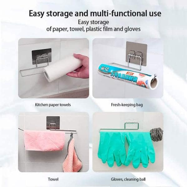 Zwolnij miejsce w kuchni i łazience! Wieszak na ręczniki papierowe można zamontować na dowolnej płaskiej powierzchni, w tym na ścianach, meblach lub płytkach!