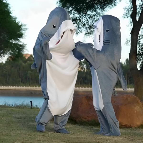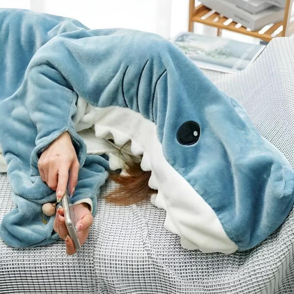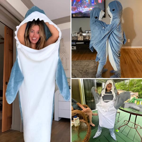Niezależnie od tego, czy jesteś dzieckiem, czy dzieckiem w sercu, ten zabawny koc będący też kostiumem rekina z pewnością przyniesie uśmiech i ciepło w każdym domu.