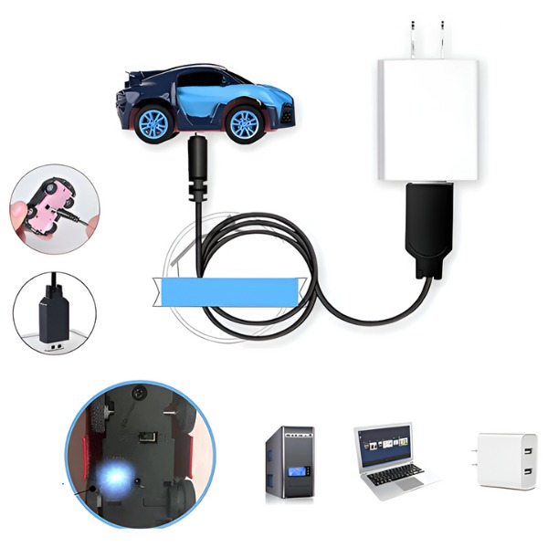Nie musisz martwić się o wymianę baterii. Wystarczy naładować samochodzik ZOOMZI za pomocą laptopa, samochodu lub powerbanku. Pełne naładowanie zajmuje tylko 30 minut, co daje do pół dnia czasu na zabawę – idealne rozwiązanie na pracowite dni!
