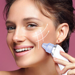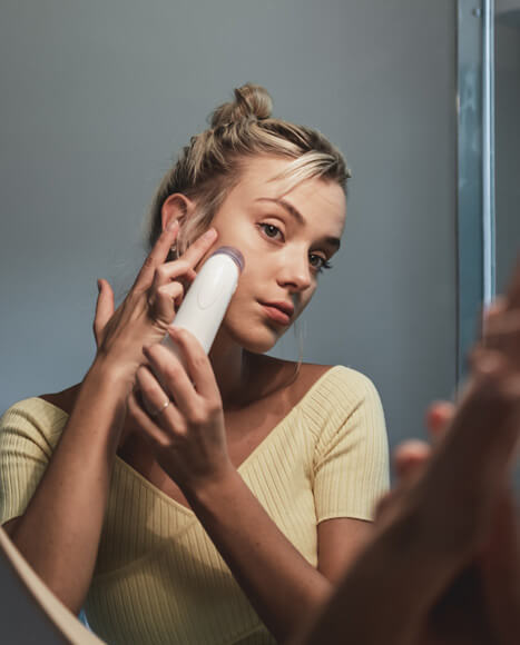 Najpierw przetestuj urządzenie na dłoni, aby poznać moc zasysania. Przyłóż urządzenie do twarzy i przesuwaj je od góry do dołu w jednym kierunku.